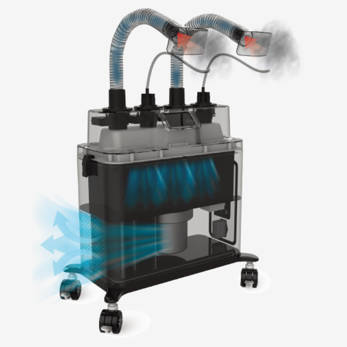 Purifies harmful chemical gases generated on-site to create a safe working environment.